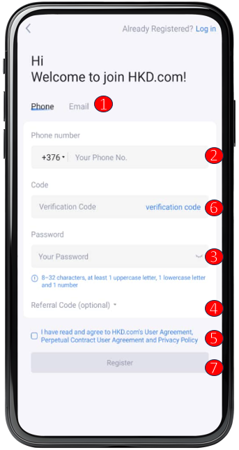 ① Choose the registration method. You can opt for【 Phone Registration 】or【 Email Registration 】