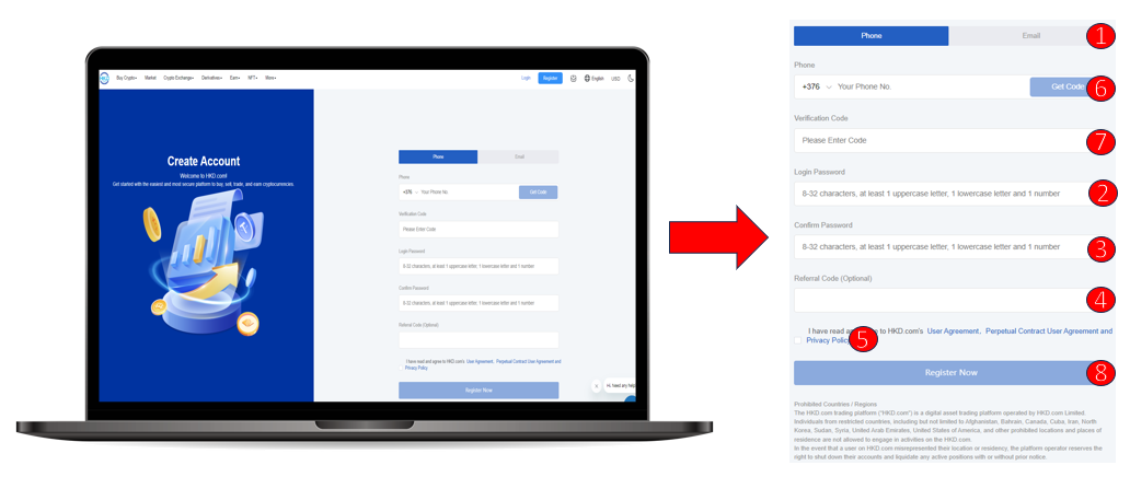 ⑧ Click on【 Register Now 】to successfully complete the registration of your HKD.com account.
