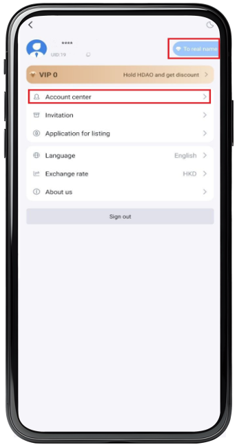 Step 2 : Click the【 To real name 】or【 Account center 】