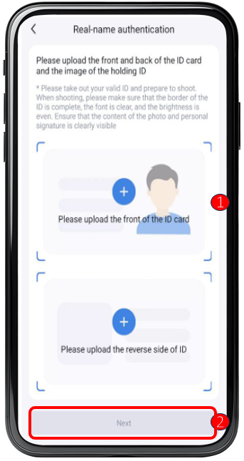 ① Upload your front and back ID card or passport, depending on the ID type you submitted.