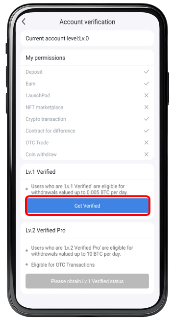 Step 4 : Click the【 Get Verified 】to complete LV.1 Verified .