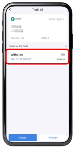 If the status column shows the transaction as “ Success " it means the funds have been successfully withdrawn. You can click on the “ Status " column in the financial records to view the transaction details. Please use the transaction ID to confirm with the third-party payment platform or wallet.