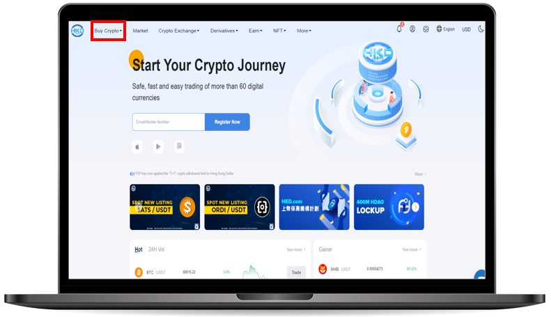 Step 4 : Return to the main page and click on【 Buy Crypto 】