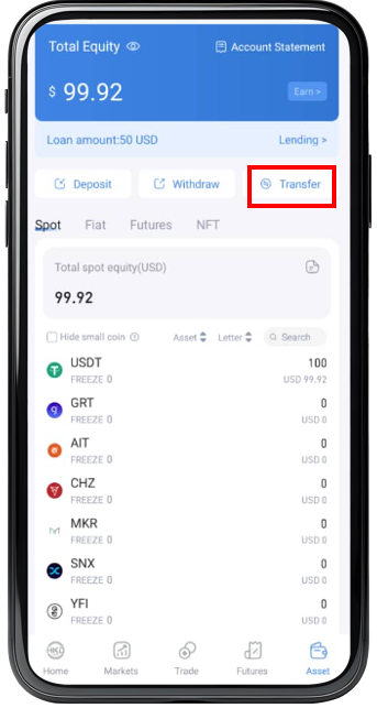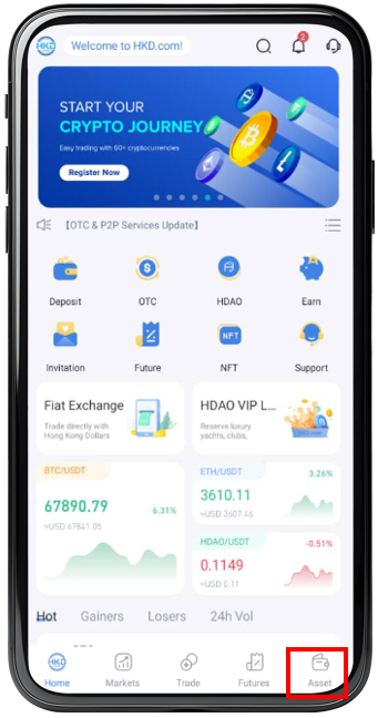 Step 1 : Log in to the app homepage, and click on the bottom-right corner【 Assets 】