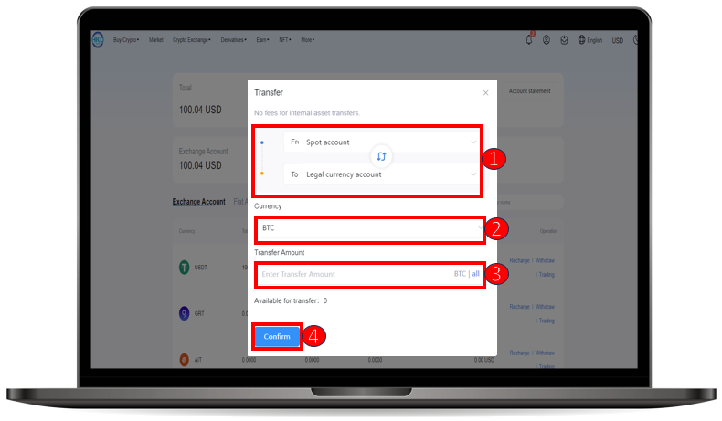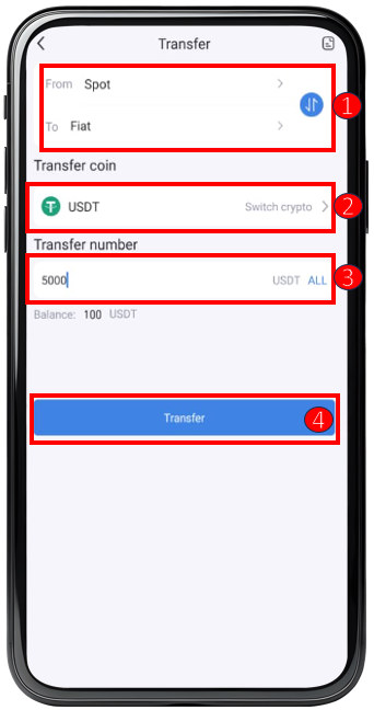 ① Choose to transfer assets from the【 Spot Account 】to the【 Fiat Account 】