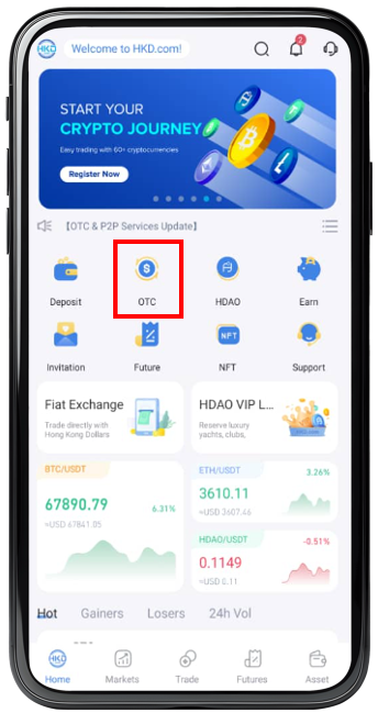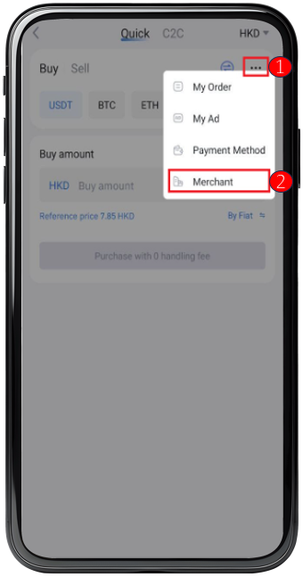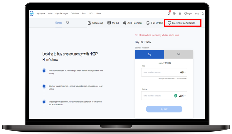 1, Please register an account at HKD.com and complete the KYC before applying the C2C Merchant Program.