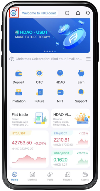 Step 1 : After login HKD App , Click the HKD.com logo in the upper left corner.