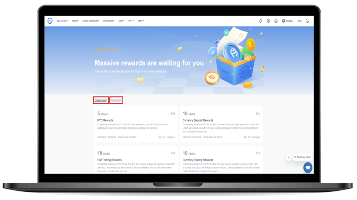 Step 3 : Click on【 Campaign 】to view the latest activities or click on【 Rewards 】to check the reward records.