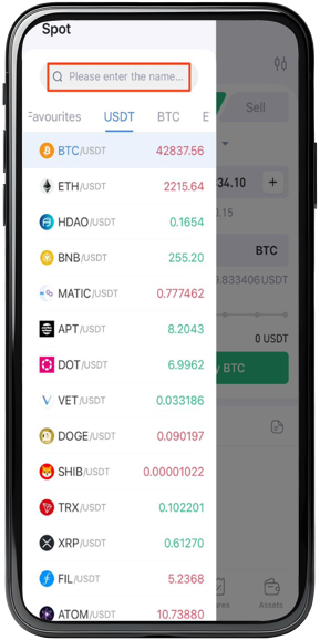 Step 4:Choose the cryptocurrency spot or enter the name in the 【 search bar 】