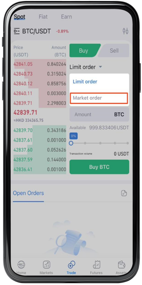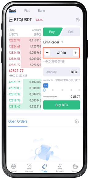 Step 5:Proceed to buy or sell by 【 Limit order 】or【 Market order 】