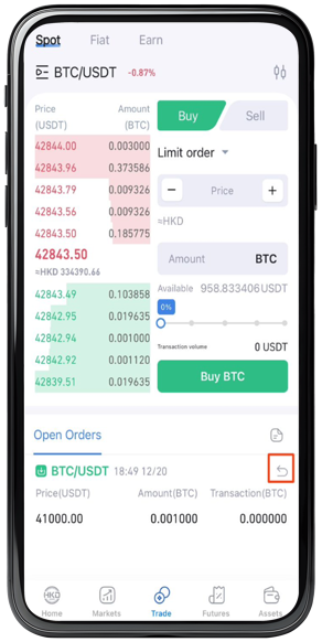 Step 5: Before the order is triggered and executed, you can cancel it by clicking on the 【 circular arrow 】 icon to the right of the Open order.