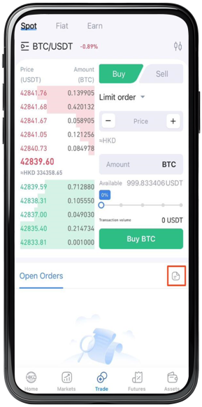 Step 4: After completing the purchase by clicking “Buy”, you can check the 【 Open Orders 】at below and wait the oder to be triggered and executed.