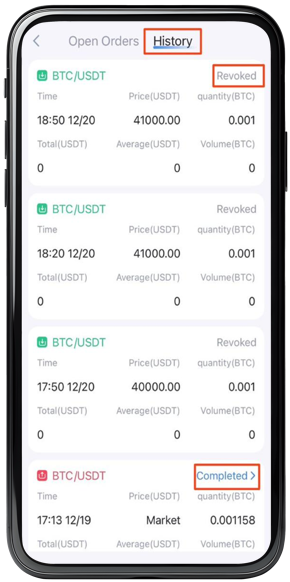 Step 2: Click on【 History 】to view the history of completed order or revoked order .