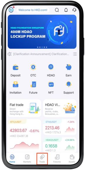 Step 2:Click on the 【 Trade 】 at the bottom menu.