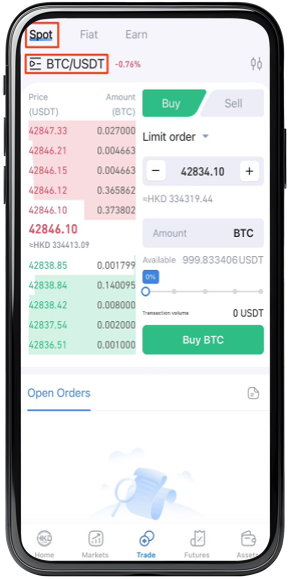 Step 3:Select 【 Spot 】, then click on the Cryptocurrency Pair.