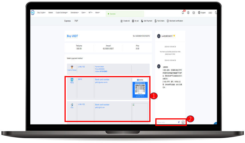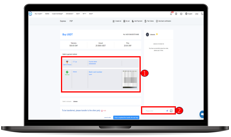 ② After completing the payment, please upload your payment Proof in the chat window on the right and wait for the merchant to verify.