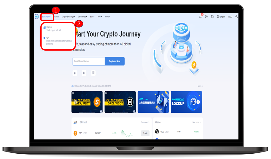 Step 1 : Log in to the homepage of HKD.com web version.