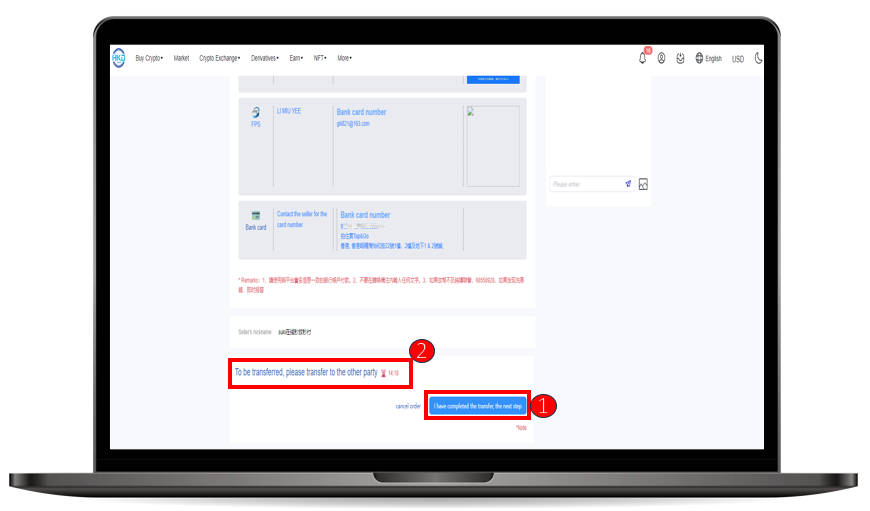 ① Users can make the payment transfer according to the payment method provided by the merchant.