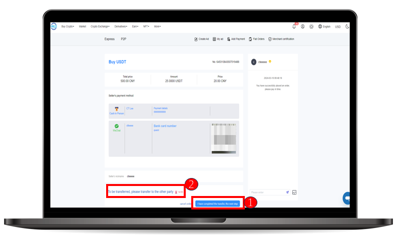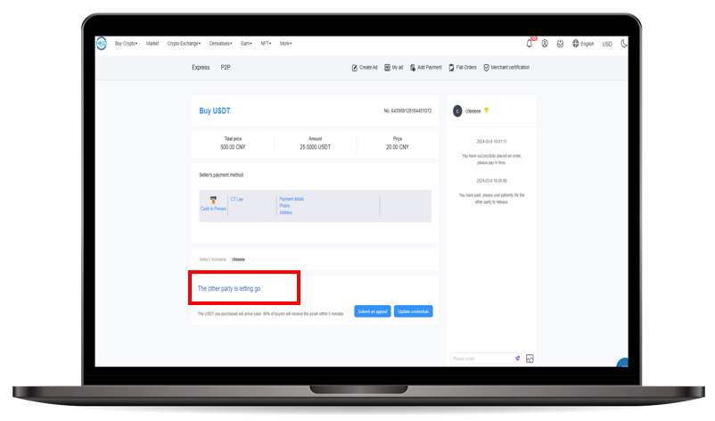 Step 6 :After completing the payment, please be patient and wait for the merchant to transfer the cryptocurrency to your wallet.