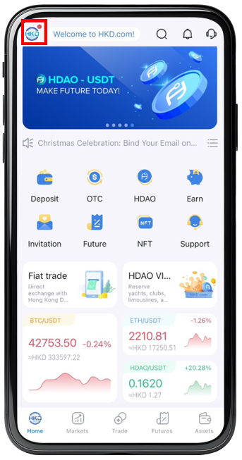 Step 1 : After login HKD App , Click the HKD.com logo in the upper left corner.