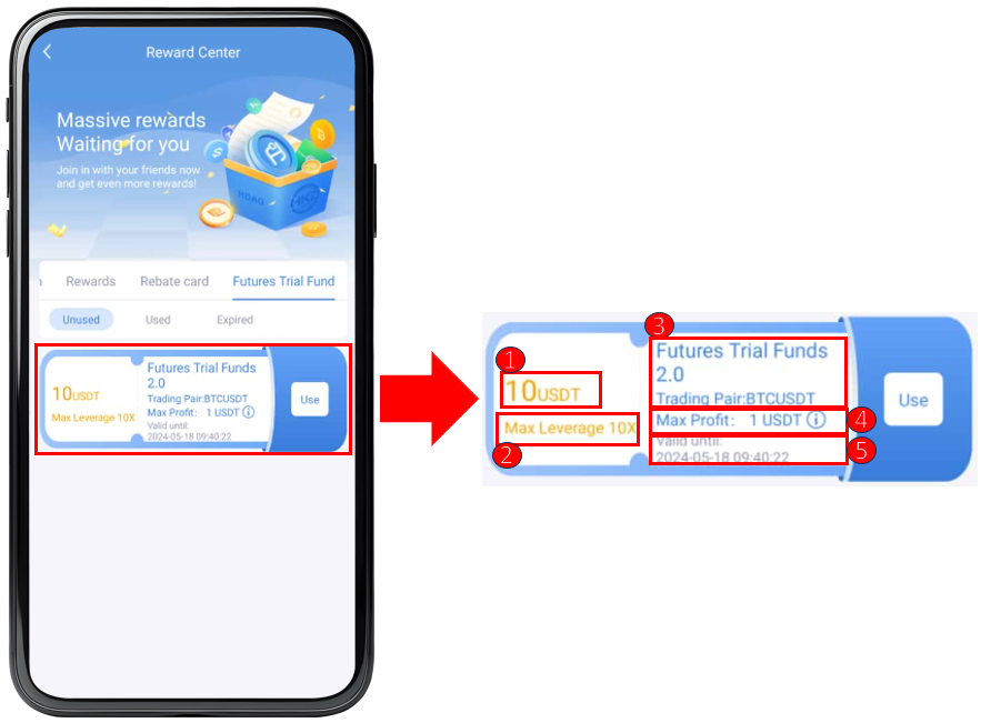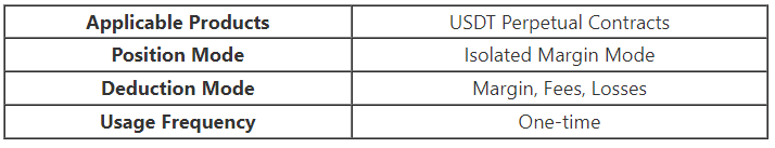 The Futures trial funds can be used as trading margin. For detailed usage scope, please refer to the table below: