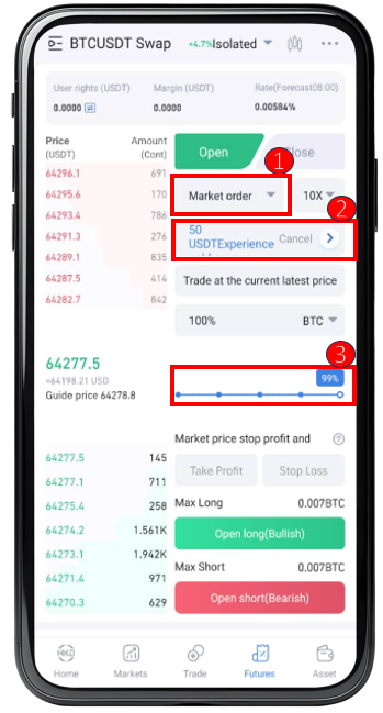 ① Futures Trial funds can only be used for market orders to open positions.