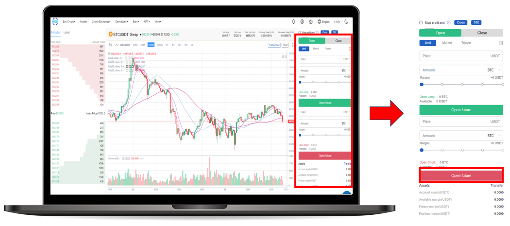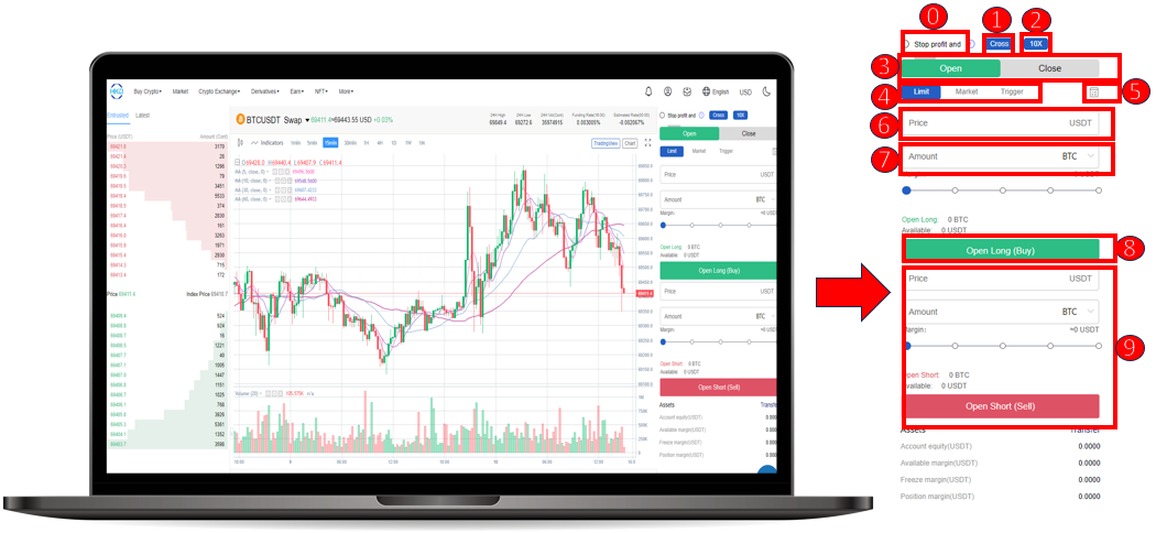 Enter price and quantity to place an order. A limit order specifies the maximum price the user is willing to buy or the minimum price. the user is willing to sell. After setting the limit price, the user only needs to wait for the order to be filled. Both opening and closing positions can use limit orders.