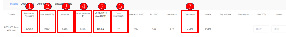 ③ Margin Rate : margin rate is a risk measure for an asset in your account. When the margin rate falls below the maintenance margin rate, the position will trigger liquidation.