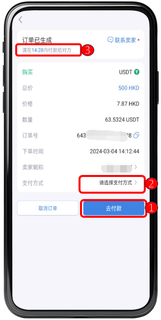 ③ **注意事项 :用户必须在完成下单后进行付款,未在订单规定的付款时间内付款,订单将自动被取消。