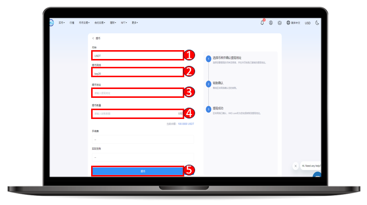 ⑤ 确认信息输入无误后,即可点击【 提币 】完成提币操作。
