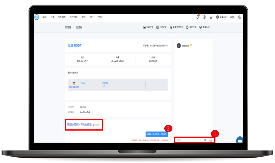 ① 下单成功后,您可以通过聊天窗口寻找商家提供付款凭证,请耐心等待商家点击已付款。