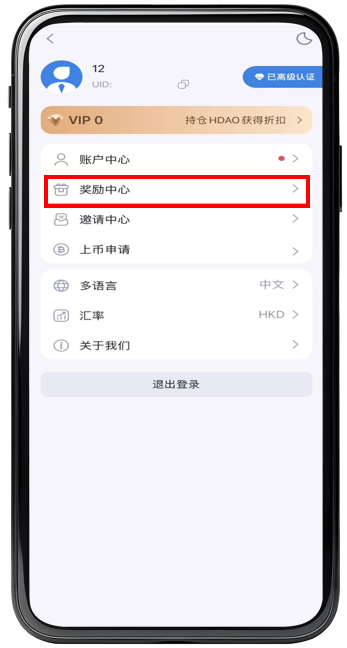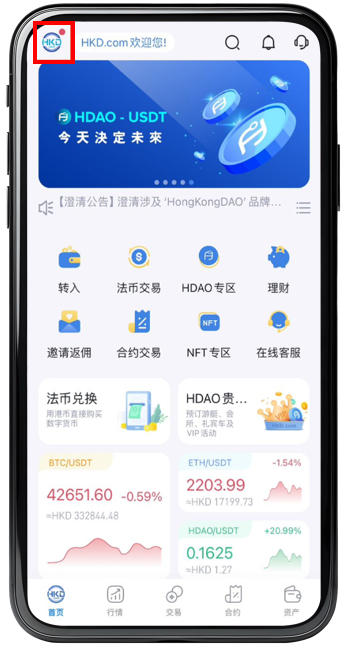 步骤 1 :登入HKD.com应用程式后点击左上方的 HKD.com 标志。