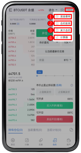 步骤 1 :登入手机APP,【 点击 】右下方合约图标。
