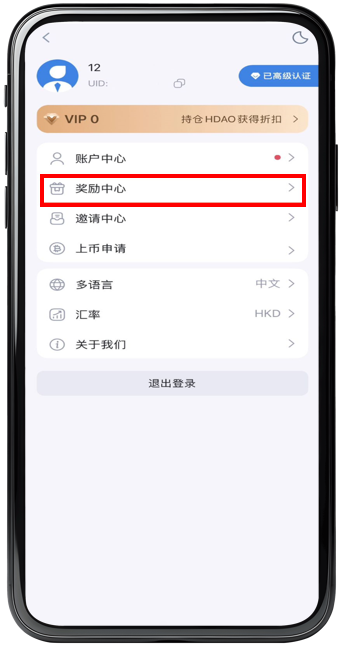 步骤 2 : 点击【 奖励中心 】