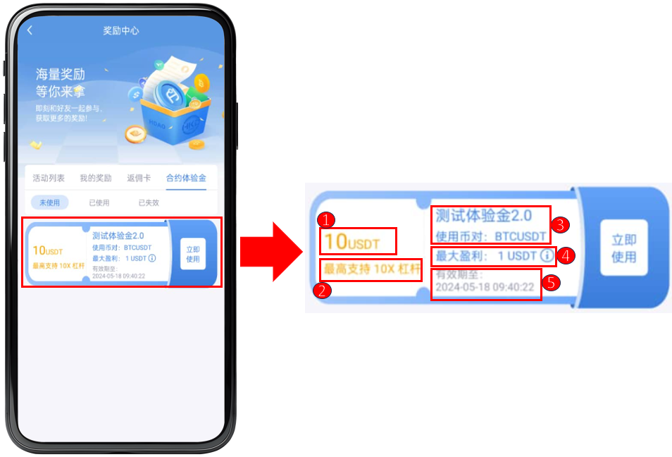 ⑤ 合约体验金有效期限。