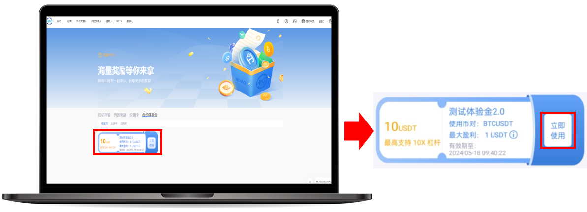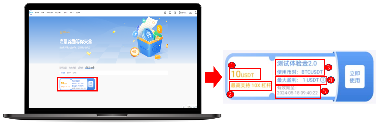 体验金限制 : 同一币种的体验金在一个仓位方向只能使用一张体验金。