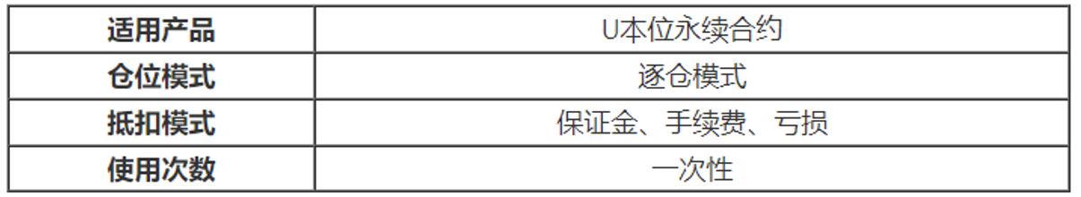 合约体验金用于交易保证金,详细使用范围可查看如下表格: