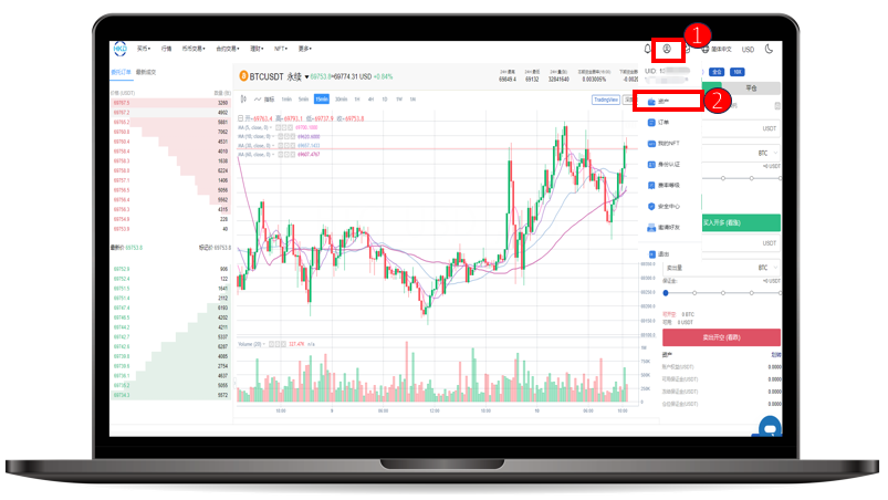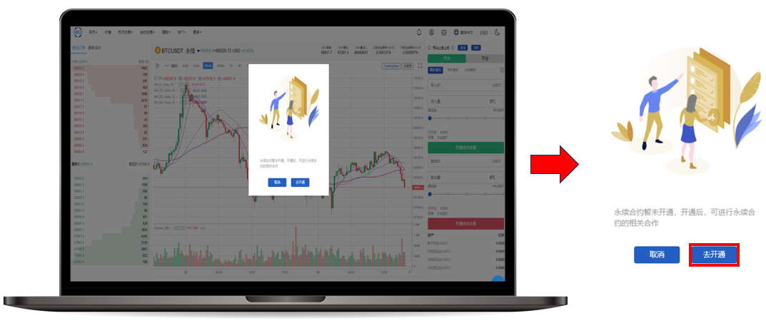 步骤 5 :完成开通合约交易后,划转资金进行合约交易。