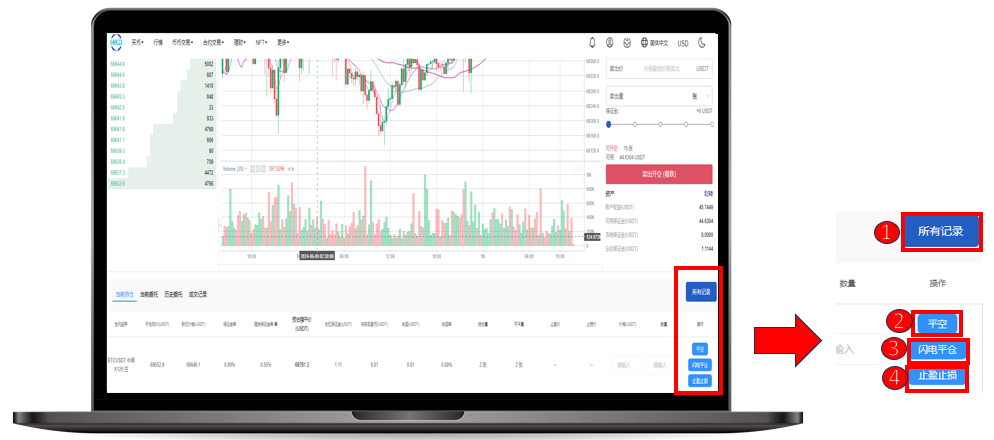 ③ 【 闪电平仓 】功能,系统会按照您输入的数量进行直接平仓。