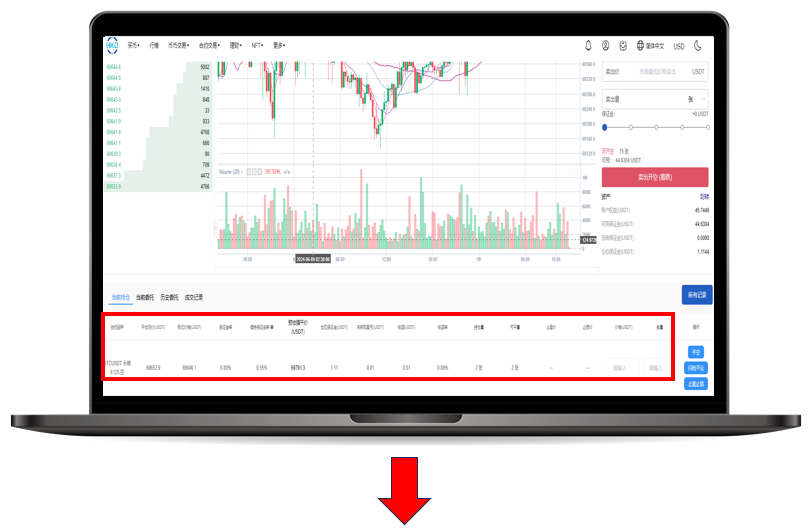 步骤 9 :完成开仓后,在页面下方可查看您的持有仓位或委托仓位。