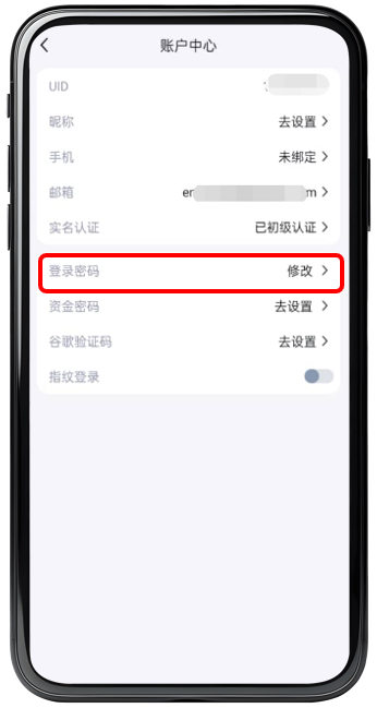 步驟 3 :點擊登錄密碼右邊的【 修改 】鍵 。