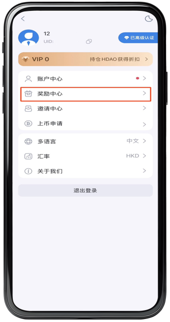 步驟 1 :登錄HKD.com網頁版後點擊上方【 更多 】,選擇【 獎勵中心 】