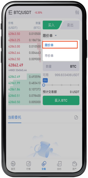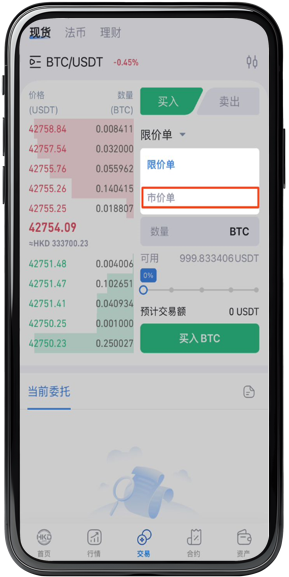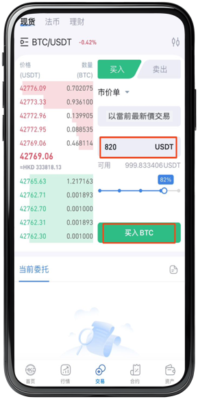 您可以按以下步骤在应用程式 App 进行现货交易: