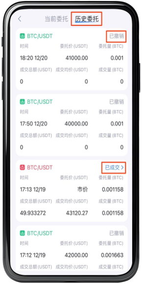 步驟3 : 點選【 已成交 】的歷史委託能查看成交明細。