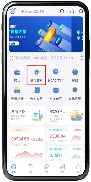 步骤1 :登錄個人帳戶后,點擊 【 法幣交易 】