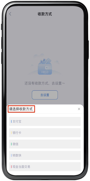 步骤5 :選擇想要綁定的收款方式 ,如:【 支付宝 】,【 银行卡 】,【 微信 】等。