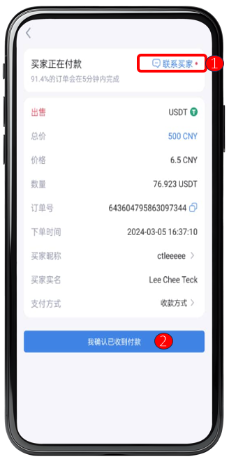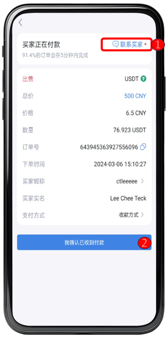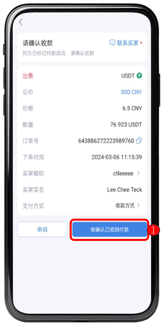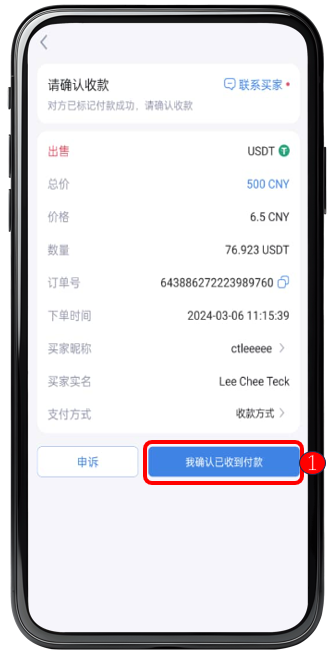 ① 確認收到商家付款後點擊 【 我確認已收到付款 】