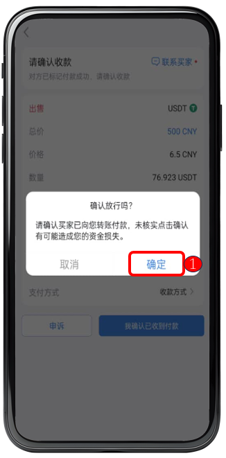② 請在商家未點選已付款前不要點擊【 我確認已收到付款 】此按鍵,以免未收到款項就提前放行,導致造成您的資金損失。
