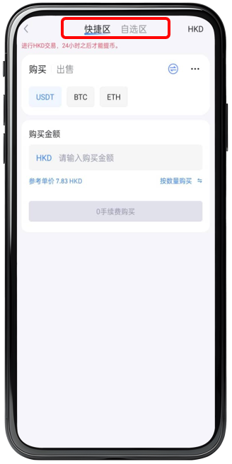 步驟 2 : 選擇【 快捷區 】或 【 自選區 】進行法幣交易。