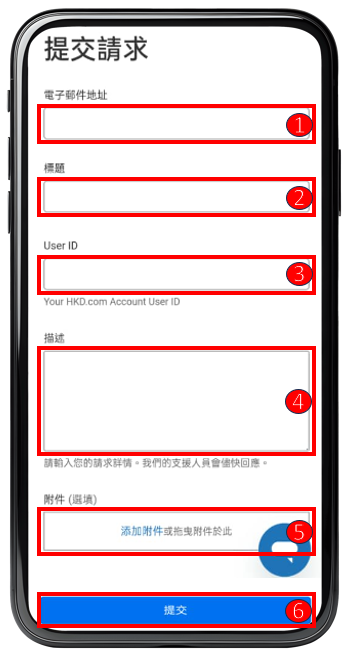 ⑥ 點擊【 提交 】並完成您的請求,客服將盡快協助處理。等待期間想了解處理進度,您可以上線聯絡我們的客戶服務團隊。